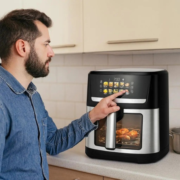 Благодаря мощности 2000 Вт и циркуляции горячего воздуха на 360°, Sokany SK-10061 обеспечивает равномерное приготовление без использования масла, сохраняя естественный вкус, аромат и питательные свойства блюд. Вместительная камера объемом 12 литров позволяет готовить всё — от картофеля фри и куриных крылышек до выпечки, пиццы и овощей-гриль.