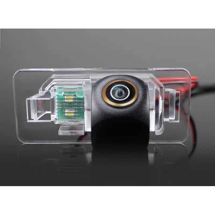 Камера предназначена для установки на автомобиль без каких-либо изменений, в штатное место подсветки номерного знака. Такой тип камер устанавливается на заводе изготовителе в топовой комплектации. Камера с объективом «рыбий глаз», с ночным видением, углом обзора 170 градусов и системой помощи при парковке автомобиля. Камера способна передавать изображение на экран с разрешением 1080P/720P. Устройство оснащено сенсором, светочувствительность которого составляет 0.1 люкс, что обеспечивает качественную картинку с объектами, даже в условиях плохого освещения, например, в темное время суток. Камера заднего вида оборудована парковочными линиями, наличие парковочных линий является важным плюсом этой модели, так как позволит своему владельцу независимо от опыта вождения, парковаться идеально в любое время суток.