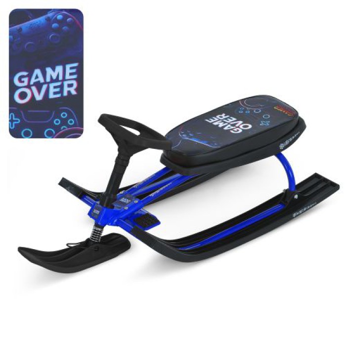 Детский снегокат синий для мальчика Bambi MS 1798-1 мягкое сиденье