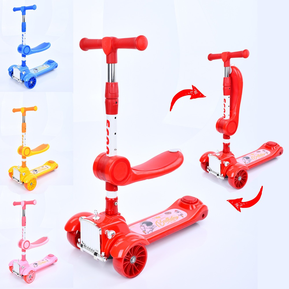 Детский самокат-беговел iTrike MAXI JR 3-089 со светящимися колесами и музыкой — баланс, стиль и безопасность для малышей