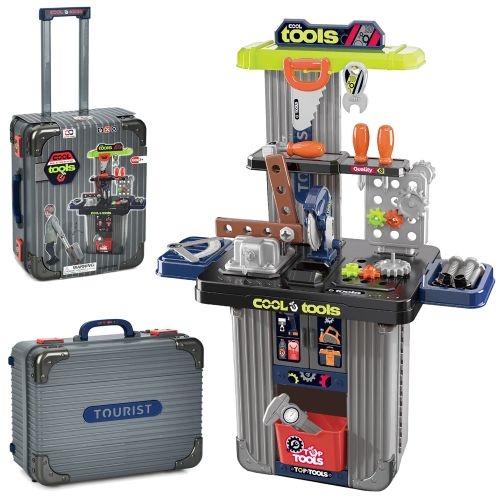 Детский стол с инструментами 2 в 1 (чемодан на колёсах) с набором инструментов, пила и отвёртки