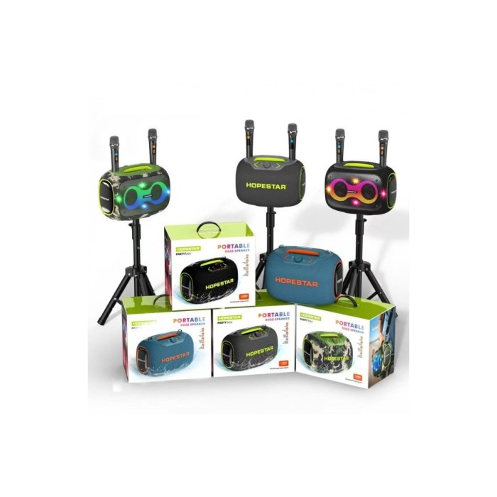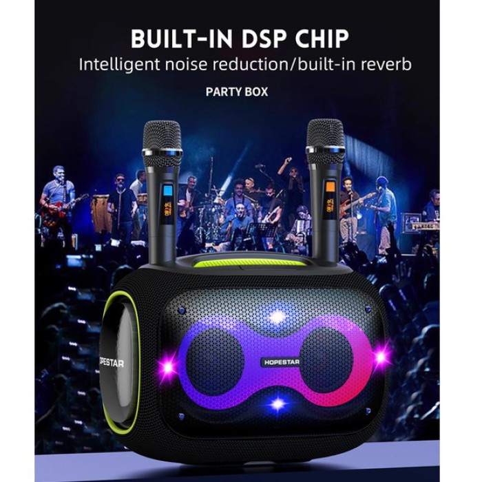 Беспроводная портативная Hopestar PARTYBOX Bluetooth колонка с 2 микрофонами BT5.3/USB/AUX/TF, 120 Вт, TWS, 8h