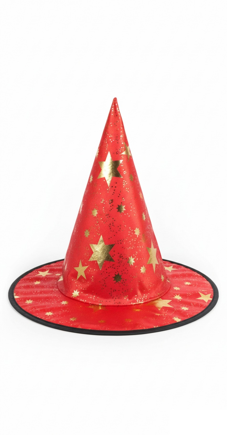Этот карнавальный аксессуар представляет собой классический колпак ведьмы, украшенный звёздами. Он выполнен из лёгкого текстильного материала и подходит для тематических мероприятий, костюмированных вечеринок, Хэллоуина и других праздников. Дизайн — строгий, но выразительный, позволяет дополнить образ ведьмы без лишних деталей.