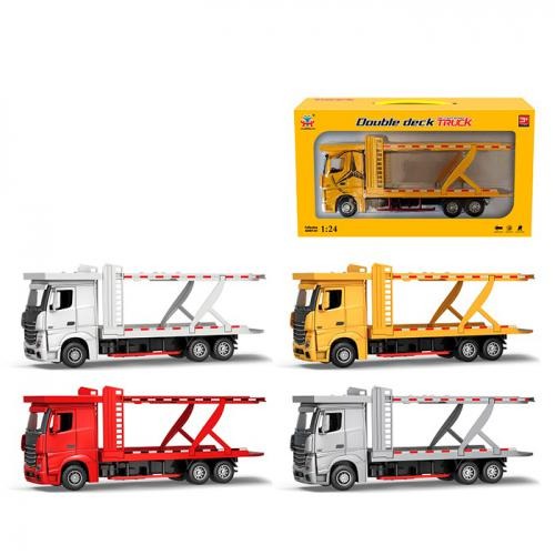 Благодаря резиновым колёсам трейлер плавно едет по поверхности, а прочный металлический корпус гарантирует долговечность и устойчивость к ударам. Модель представлена в четырёх цветах и станет отличным подарком для юных любителей техники.