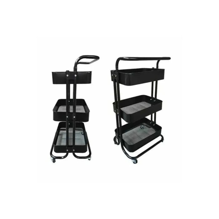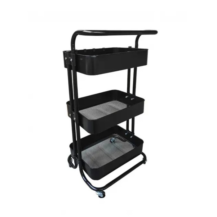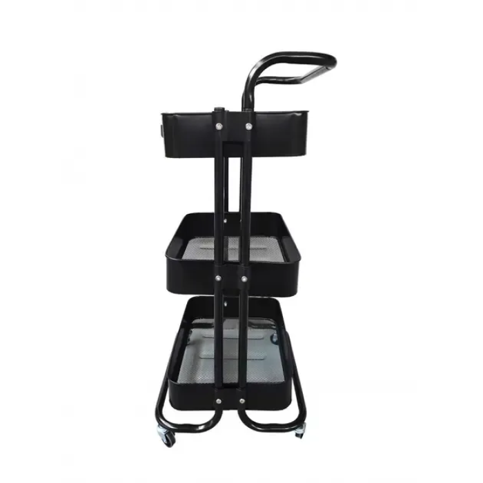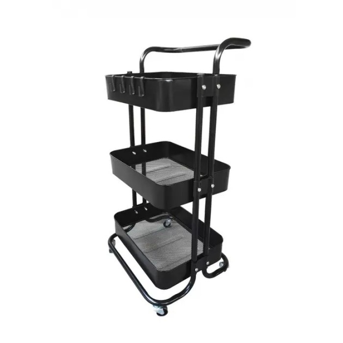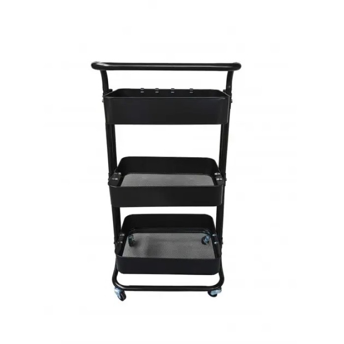 Полка-этажерка на колесах, 3 яруса, черная, металл