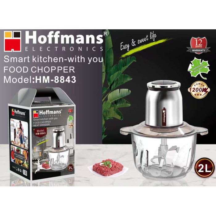Стеклянный измельчитель Hoffmans HM-8843, 2L, 1200W – кухонный блендер и чоппер, стационарное электрическое устройство для быстрого измельчения и смешивания продуктов