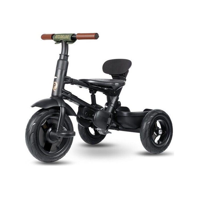 Трехколесный детский складной велосипед-трансформер Tri-cycle RITO DELUXE 5 в 1 оливковый, прогулочный, для детей от 12 месяцев, с родительской ручкой, защитным козырьком и надувными колесами 10″