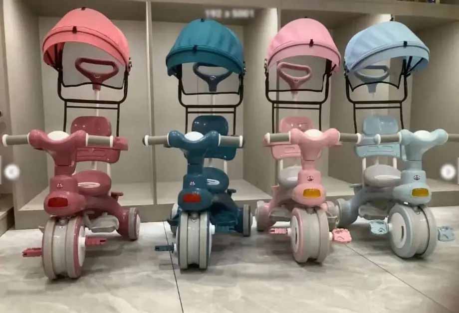 Велосипед детский трехколесный 618-2 с родительской ручкой и капюшоном, музыка, подсветка фары, разные цвета
