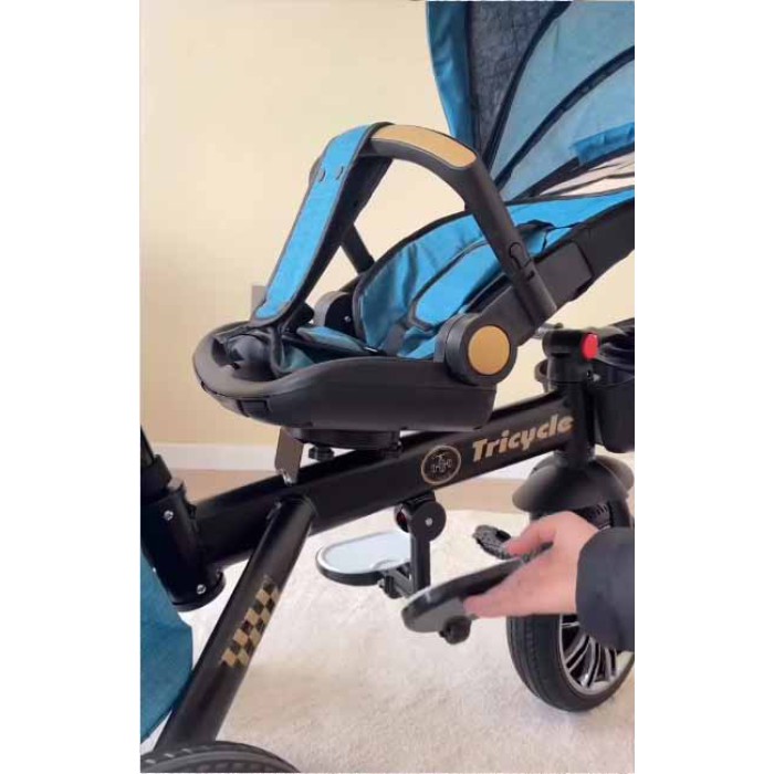 Велосипед детский трехколесный трансформер Baby Tricyc KBQ-6170 с родительской ручкой и капюшоном, поворотное сиденье, свет, музыка, 2 цвета