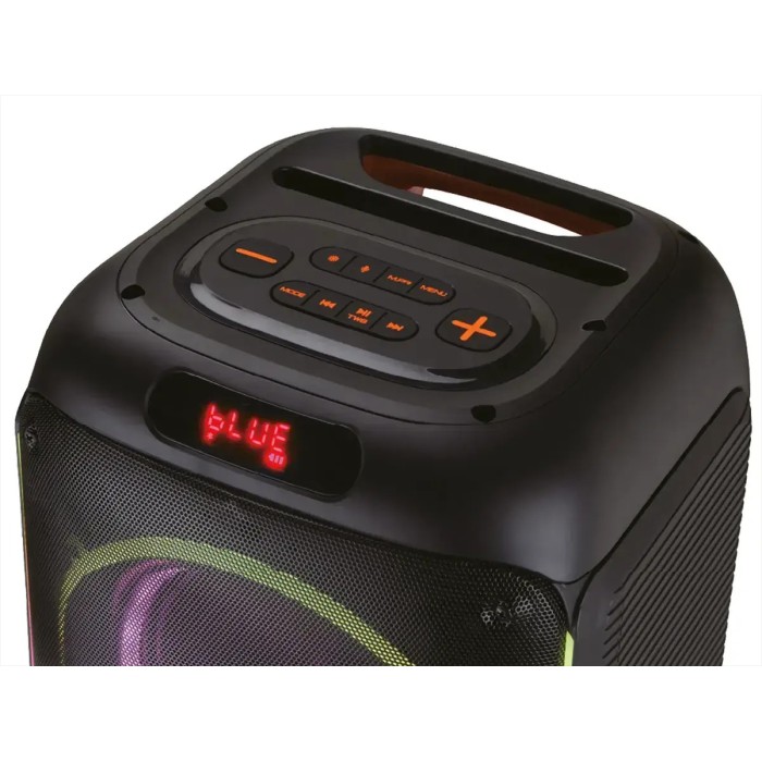 Корпус виготовлений з міцного ABS-пластика з металевими ґратами на динаміці, що забезпечує довговічність і сучасний вигляд. Ергономічна ручка для транспортування робить колонку максимально мобільною – брати її на вечірки, виступи або виїзні заходи легко та зручно.