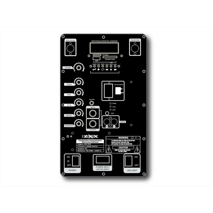 ZXX-7676 підходить для шкільних урочистостей, вечірок, концертів, весіль, конференцій та рекламних акцій. Потужність 60 Вт та 12" динамік забезпечують чистий та глибокий звук для будь-якого простору.