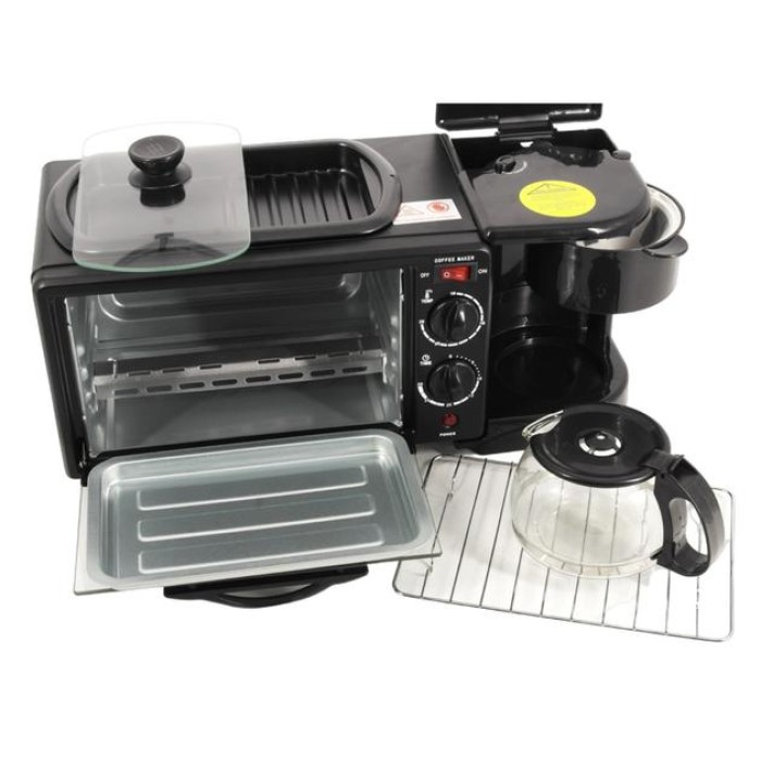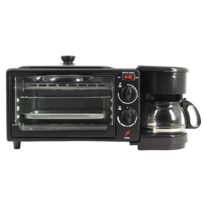 Domotec MS 5308B – це багатофункціональний пристрій «3 в 1», що поєднує мініпеч, гриль і кавоварку. Ідеальний варіант для невеликої кухні, офісу, дачі чи гуртожитку, де важливо заощадити місце та отримати максимум можливостей. У мініпечі можна запікати м'ясо, рибу, овочі та випічку, а на вбудованій сковороді-грилі готувати яєчню, сосиски, тости та інші страви. Вбудована кавоварка забезпечить свіжу ароматну каву для ідеального сніданку.