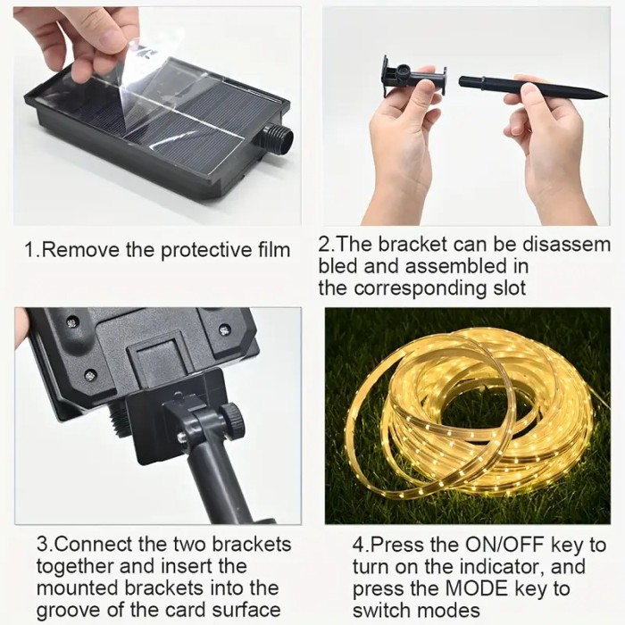 Створіть чарівну атмосферу у дворі, на терасі або всередині оселі з цією енергоефективною LED гірляндою довжиною 10 метрів. Вбудована сонячна панель з акумулятором 1800 mAh дозволяє гірлянді працювати автономно, без необхідності підключення до розетки, забезпечуючи економію електроенергії та зручність у використанні. Тепле біле світло ніжно осяює простір, створюючи затишок у будь-який час доби.