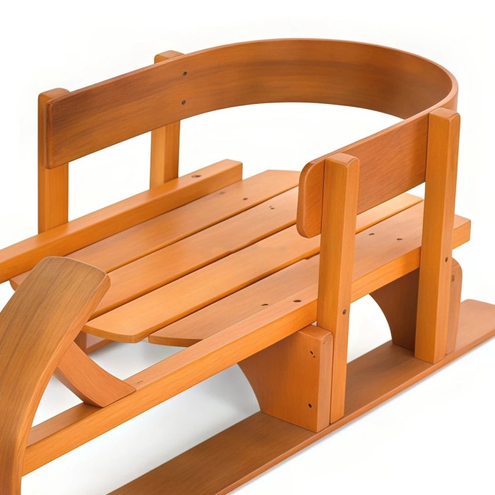 Санки виготовлені з високоякісного дерева та оснащені металевими кріпленнями, що гарантує надійність конструкції навіть при активному використанні. Спинка оберігає дитину від падіння, а мотузка для тягання робить катання ще більш зручним та веселим. Санки готові до використання одразу після розпакування, що дозволяє насолоджуватися зимовими розвагами без зайвих турбот.