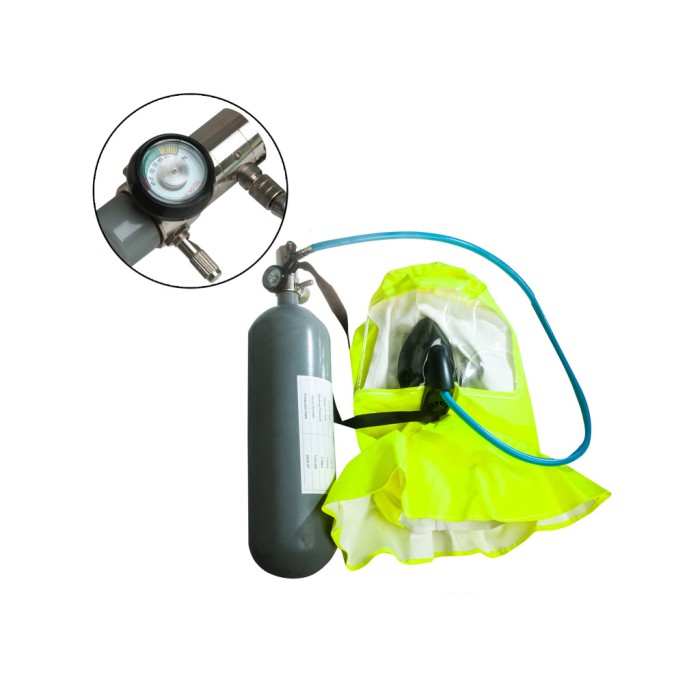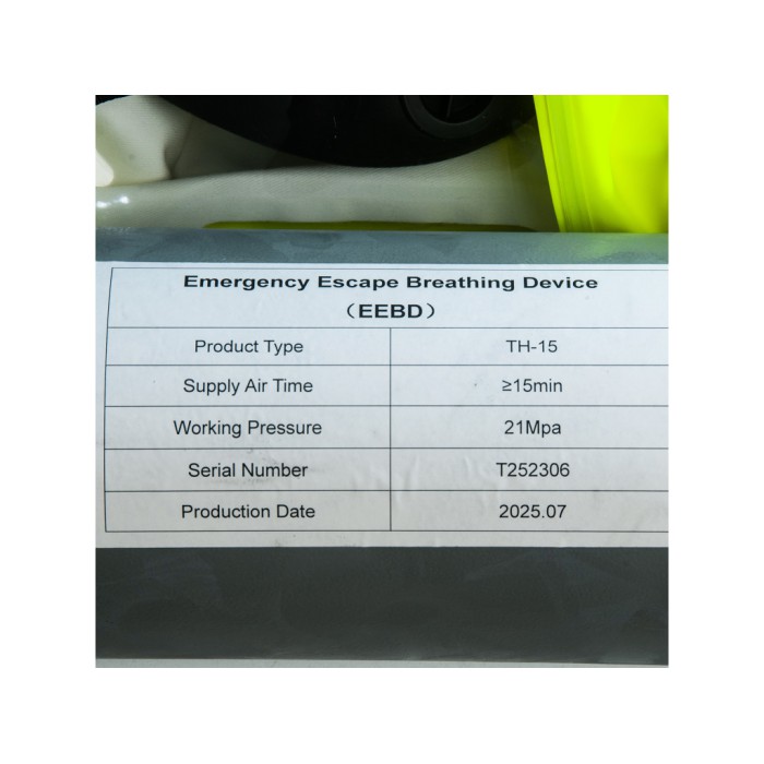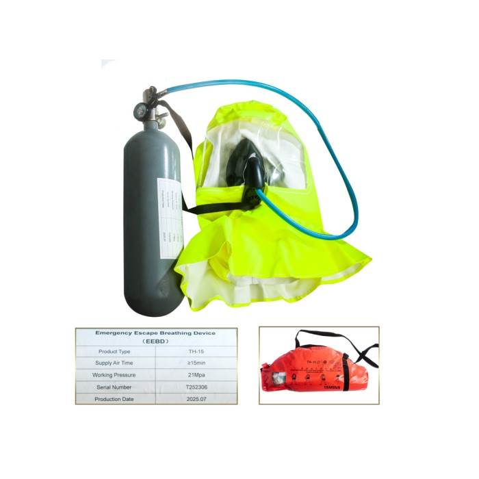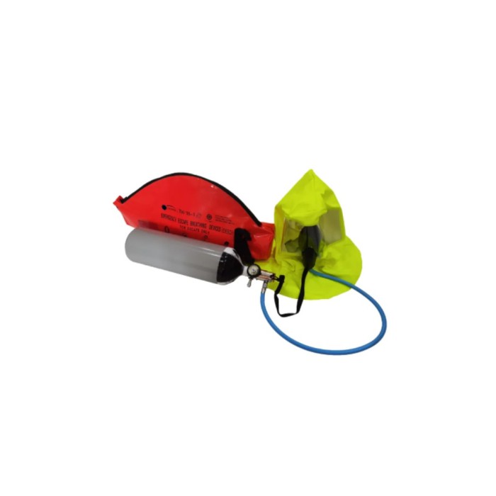 • EEBD (Emergency Escape Breathing Device): Найпоширеніший тип, працює на стисненому повітрі, оснащений капюшоном або маскою.