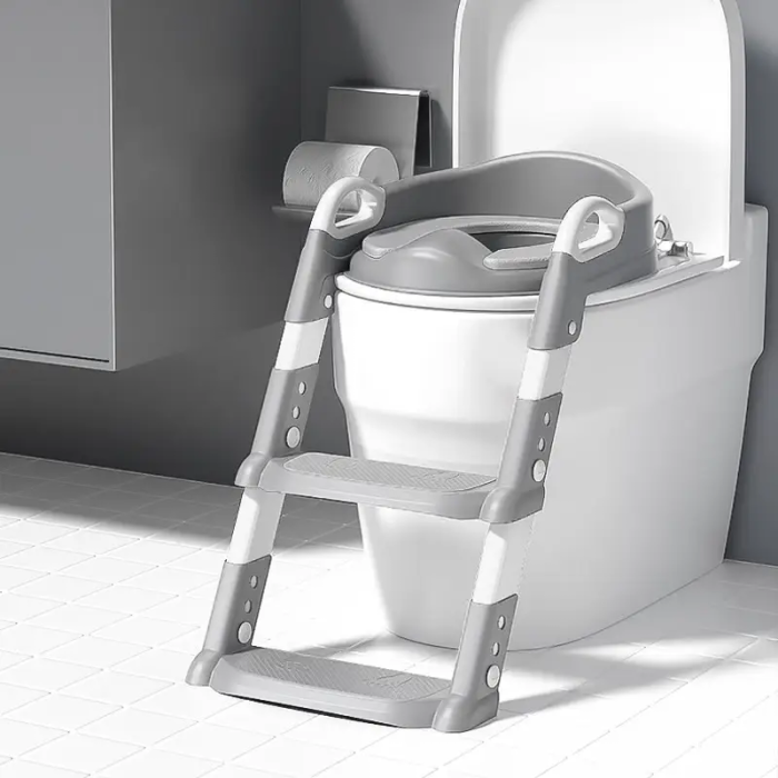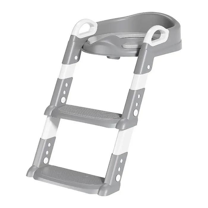 Дитяча накладка на унітаз Babycare зі зручними сходами та бічними ручками, сірий, безпечне антиковзке сидіння для комфортного привчання дитини до туалету