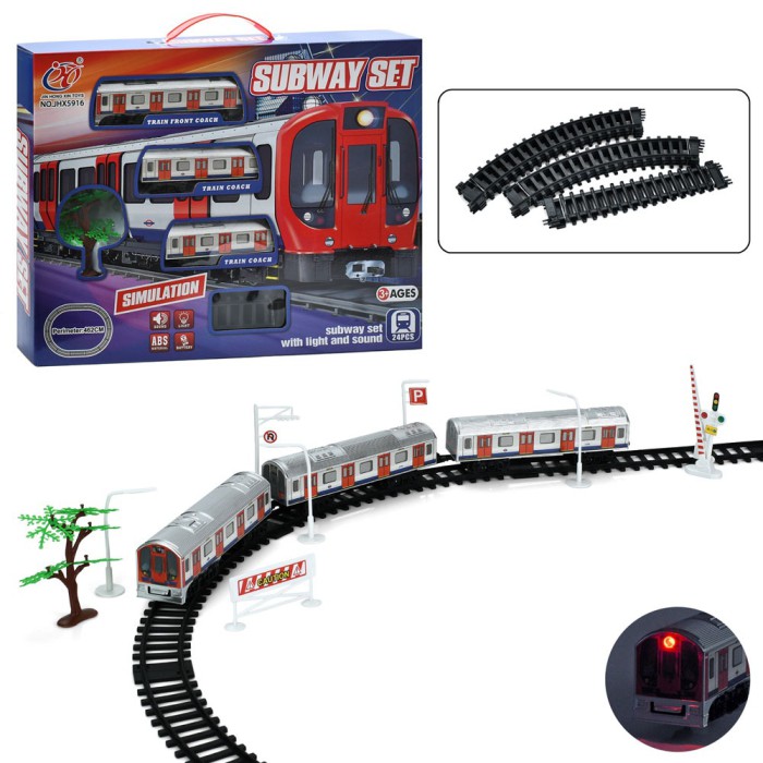Дитяча залізна дорога 462 см з локомотивом та 2 вагонами, інтерактивна, зі звуком і світлом, дорожні знаки, 24 деталі, на батарейках – іграшка для дітей