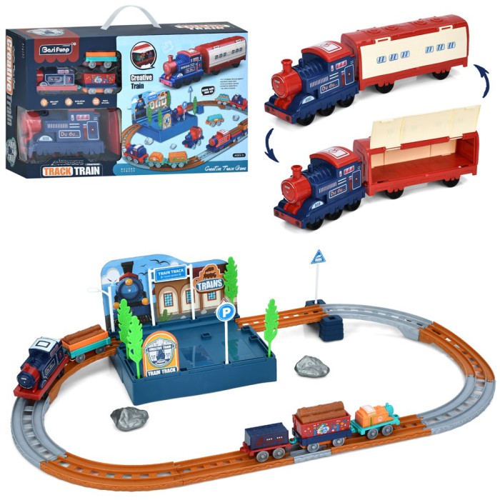 Вирушайте у захопливу подорож у світ залізниць із цією унікальною дитячою залізною дорогою! Набір створений для маленьких дослідників, які обожнюють конструювати маршрути, вигадувати історії та гратися у мініатюрному місті. Іграшка поєднує ретро-стиль, інтерактивність та розвиток логічного мислення.