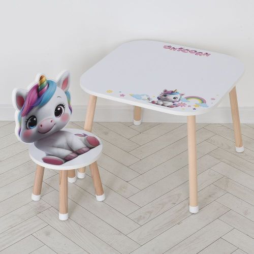 Дитячий дерев’яний столик M 502-1 з стільчиком — набір “Єдиноріг” для творчості та навчання