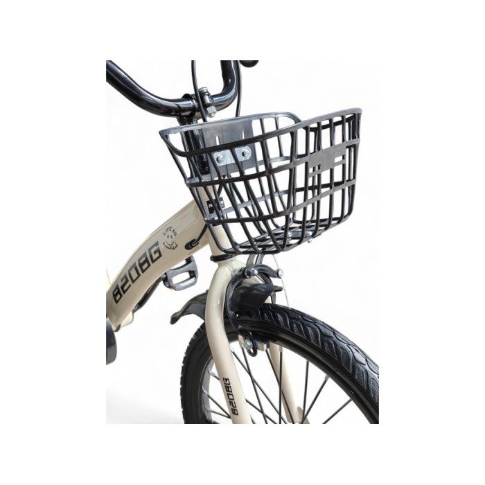 Дитячий двоколісний велосипед 8208G 818-14 з додатковими світлодіодними колесами, сталевою рамою та надувними колесами 14", з кошиком і багажником, регульоване кермо, дзвіночок, бежевий