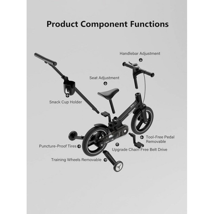 Велосипед створений для поетапного розвитку координації та балансу — від перших спроб пересування до впевненої самостійної їзди. Складна рама дозволяє без проблем зберігати транспорт навіть у невеликій квартирі та зручно перевозити його в автомобілі або брати із собою на відпочинок.