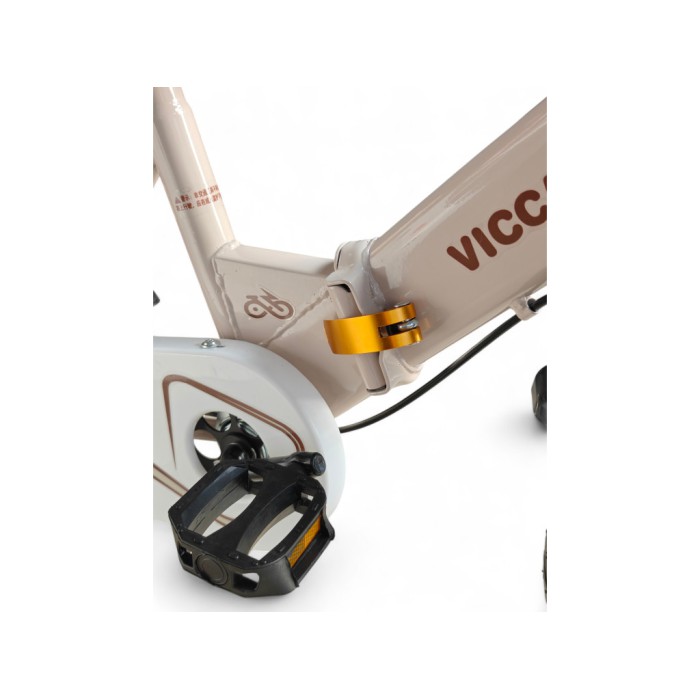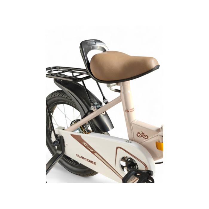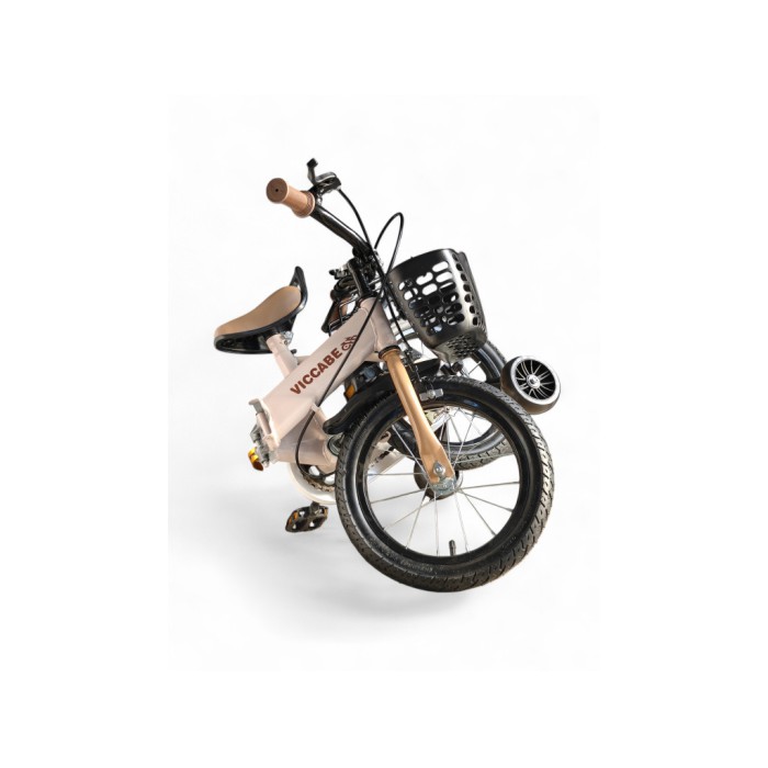 Дитячий двоколісний велосипед Viccabe Sport 6100-88A-14, сталева рама, колеса 14" з надувною гумою, складний, з кошиком та багажником, регульоване кермо, додаткові колеса, що світяться, дзвіночок, для дітей (бежевий, білий, блакитний)