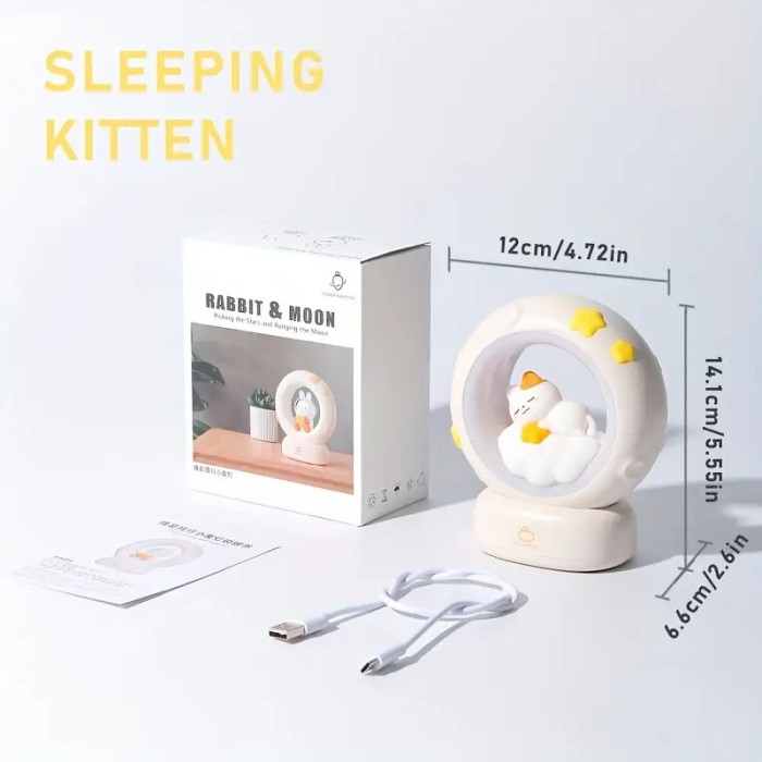 М’який силіконовий корпус приємний на дотик і абсолютно безпечний для дітей — його можна обіймати, торкатися, навіть брати до ліжка. Усередині сяє милий котик, який мирно спить на хмаринці в середині сяючого місяця, а навколо — мерехтять зірочки з теплим LED-світлом.