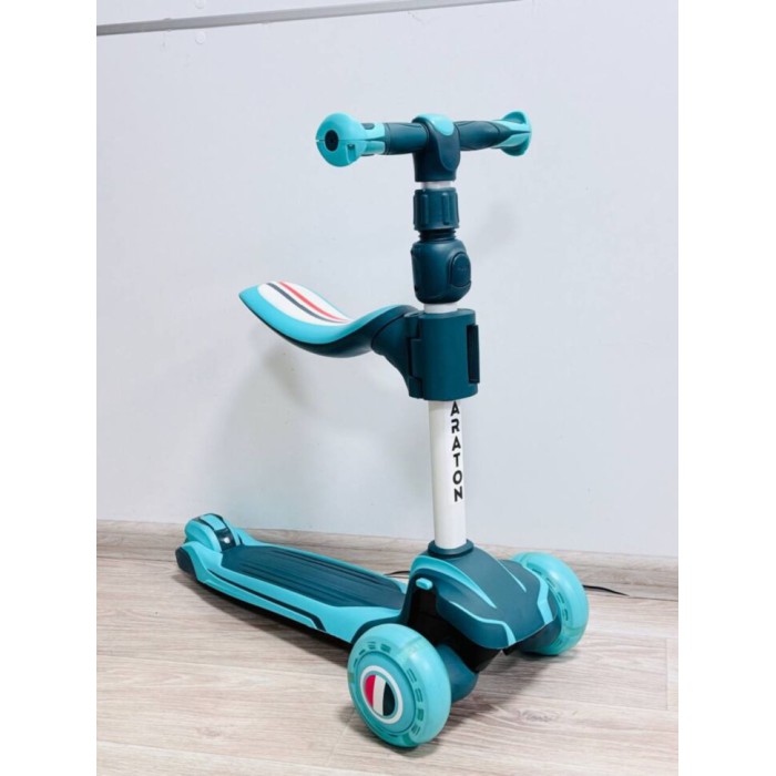 Подаруйте своєму малюку безпечні та веселі прогулянки з дитячим самокатом Maraton Flex Blue-Green 2 в 1. Цей триколісний толокар та складаний самокат поєднує в собі комфорт, стиль та функціональність, допомагаючи розвивати моторику та координацію дитини.