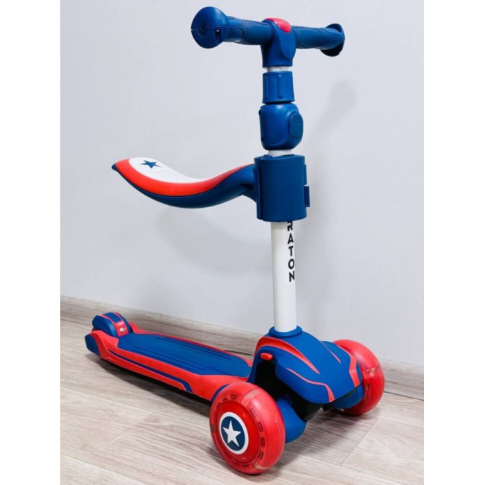 Дитячий самокат Maraton Flex Red-Blue 2 в 1, триколісний, толокар, складаний, PU колеса, заднє ножне гальмо, регульоване сидіння для дітей