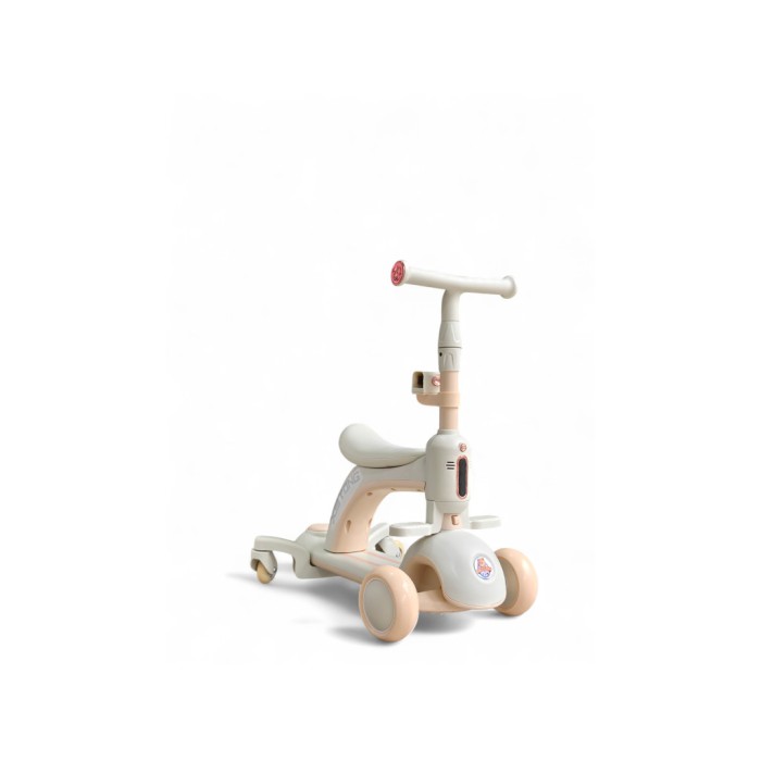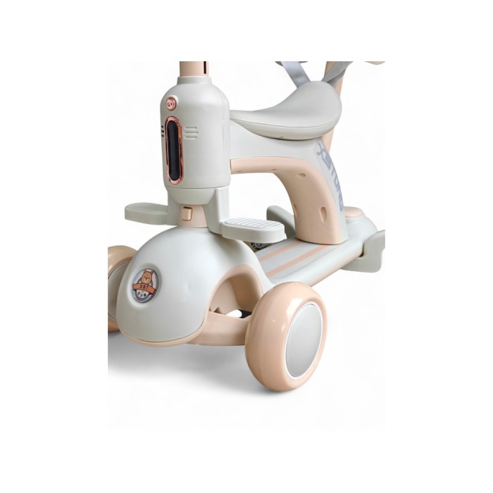 Модель оснащена музичною платформою та кермом із підсвічуванням, що робить кожну прогулянку яскравою та цікавою. Колеса забезпечують плавний і тихий хід, а система керування нахилом допомагає дитині розвивати координацію та баланс.