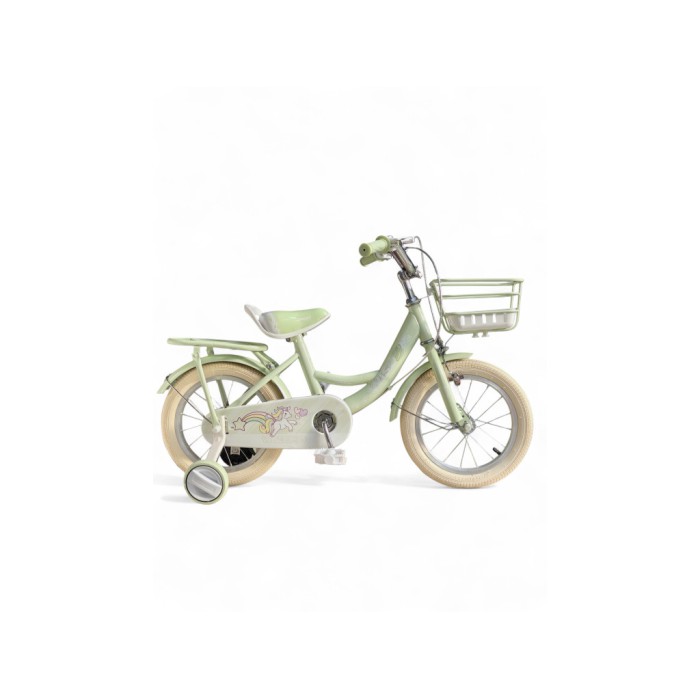 Дитячий велосипед Wisdom 5834-14 14" двоколісний, сталева рама, надувні колеса, додаткові гумові колеса, кошик, багажник, регульоване кермо, дзвіночок, (зелений, рожевий)
