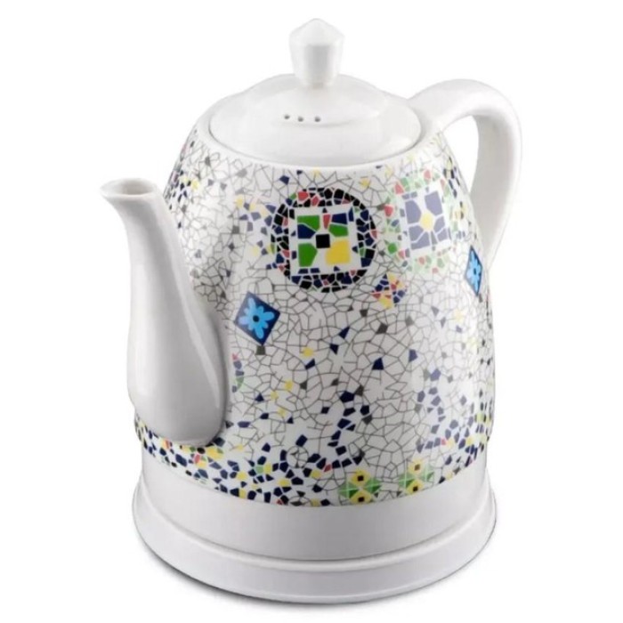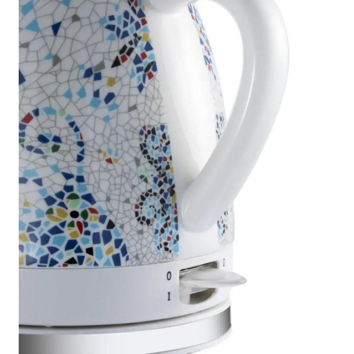 Електричний керамічний чайник Domotec MS-7837 1.4 л 1000 Вт з термозображенням "Мозаїка" - поєднання стилю, практичності та безпеки. Міцний керамічний корпус зберігає тепло довше і надає напоям натурального смаку, а оригінальний візерунок «Мозаїка» робить чайник яскравим акцентом на будь-якій кухні. Ергономічна ручка та знімна кришка забезпечують зручність наливання та догляду за приладом.
