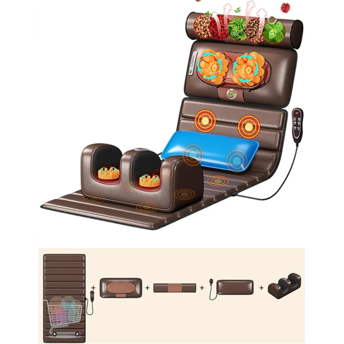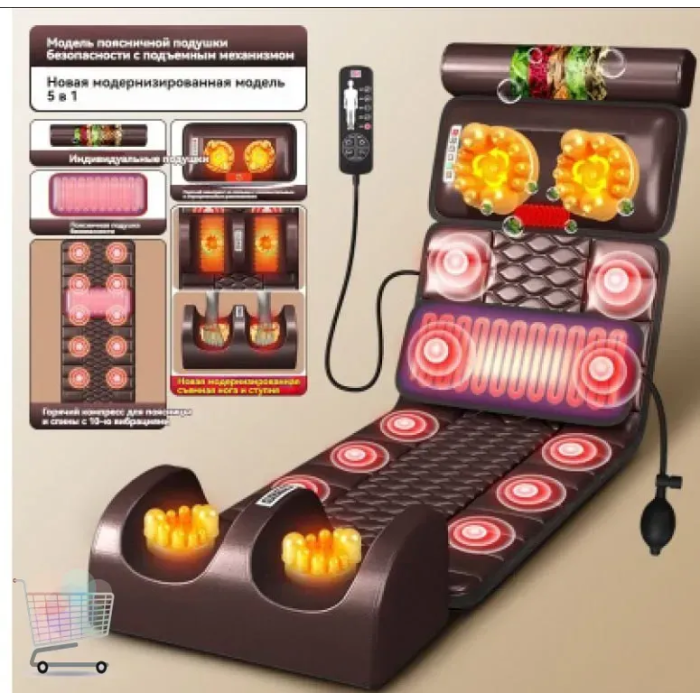Електричний масажний мат ZH-09YX5 створений для комплексного догляду за тілом у домашніх умовах. Пристрій забезпечує ефективний масаж шиї, спини, попереку, сідниць, стегон, литок та стоп, допомагаючи зняти втому та м’язове напруження після тривалого дня або сидячої роботи.