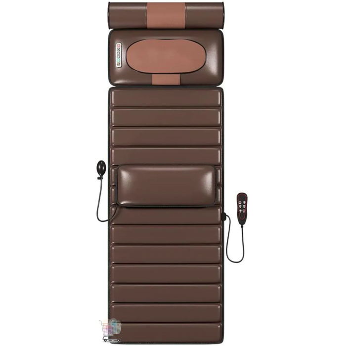 Масажний мат поєднує роликовий, вібраційний, точковий та шіацу-масаж із функцією інфрачервоного підігріву. Вбудовані механізми розминають, постукують та розтягують м’язи, а 9 рівнів інтенсивності та 3 автоматичні програми дозволяють підібрати оптимальний режим. Підігрів підсилює розслаблювальний ефект та покращує кровообіг. Керування доступне як вручну, так і за допомогою пульта дистанційного керування.
