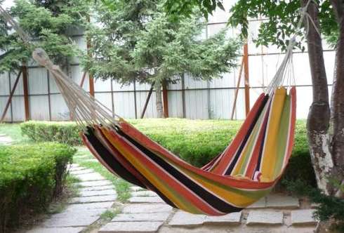 Маючи в своєму розпорядженні гамак в саду просто під відкритим небом, має сенс використовувати таку конструкцію, яка не передбачає матраца, щоб у випадку, якщо піде дощ, вам не довелося кинути все і рятувати дорогоцінні перини. Навпаки, комфортний гамак із матрацом можна повісити на терасі або під навісом, де наповнювач матраца не відволожиться. Поруч із гамаком у саду можна встановити імпровізований столик ліжка з перевернутого кошика, ящика або скрині: на ньому буде зручно розмістити книги, склянки з напоєм, сонцезахисні окуляри або мобільний телефон.