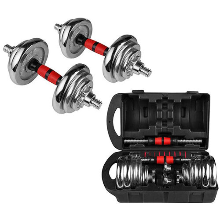 Гантелі хромовані розбірні у кейсі 20 кг з розширювачем — професійний набір для силових тренувань