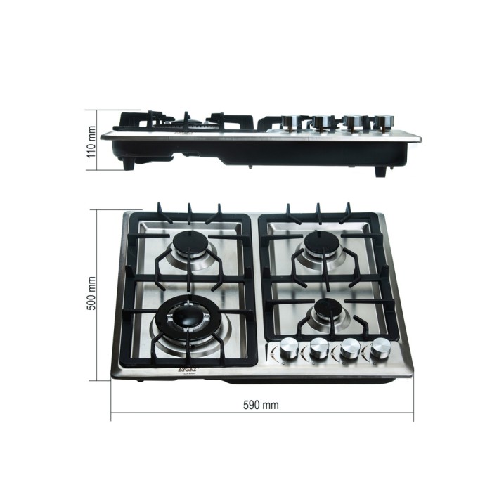 Газова плита AYGАZ 4 конфорки, настільна, врізна, корпус з нержавіючої сталі, вбудована варильна поверхня для кухні, надійна, компактна