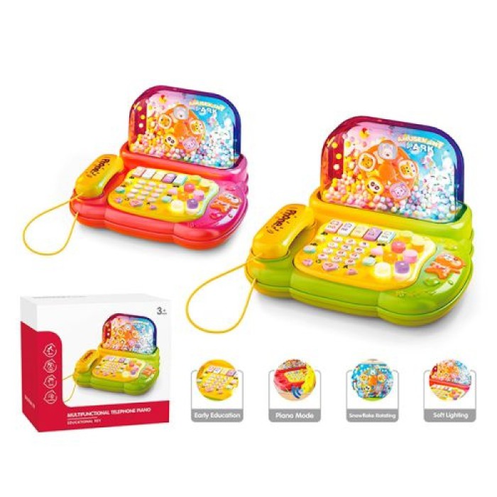 Телефон YL78931 — яскрава інтерактивна іграшка, що розвиває слух, увагу та моторику дитини. Модель оснащена музичними та звуковими ефектами англійською мовою, світловою індикацією та рухомим колесом із пінопластовими кульками, які створюють веселий ефект під час гри.