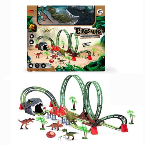 Ігровий трек 4173 “Парк Динозаврів” 80 деталей, оберт 360°, світло, звук, динозаври, акумулятор та USB-зарядне