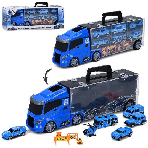 Ігровий Трейлер 666-08K Поліція — 39 см, 6 поліцейських транспортів від 7 см, дорожні знаки, у подарунковій коробці