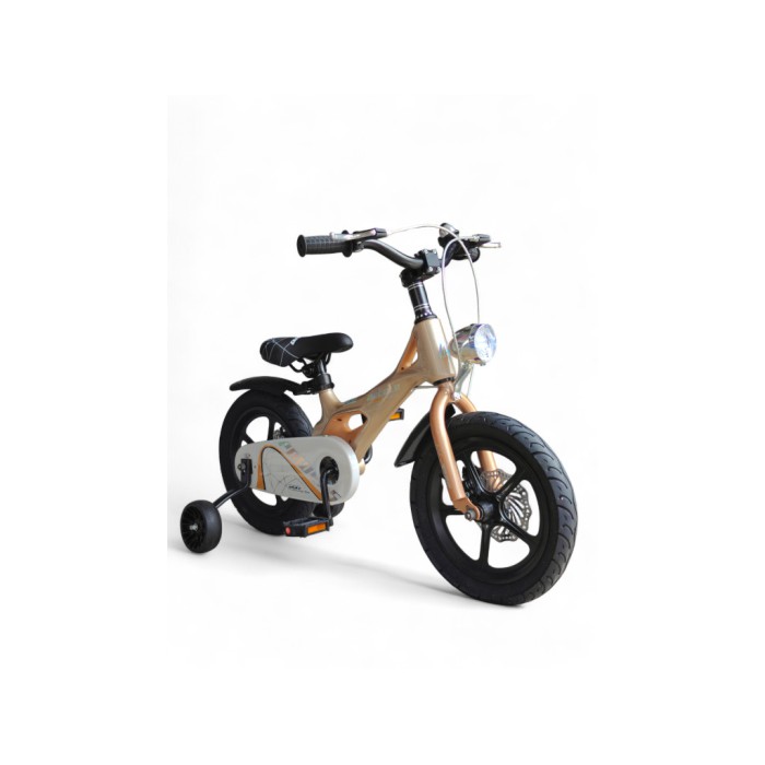Дитячий велосипед Antule LP-14, 14", магнієва лита рама, надувні колеса, дискові гальма, регульоване кермо, ліхтар, додаткові гумові колеса, дзвіночок, бежевий