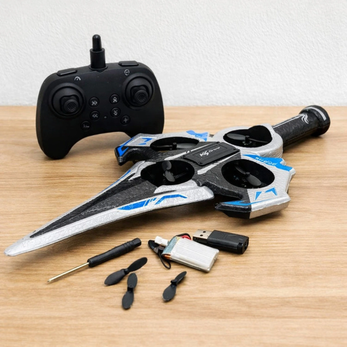 Радіокерований дрон KS-199 «Літак-Меч» з LED-підсвіткою, пультом керування та трюковими польотами для дітей і дорослих