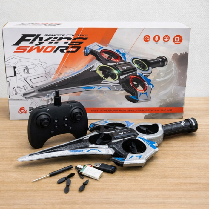 Дитяча іграшка Радіокерований дрон «Літак-Меч» KS-199 — це сучасний квадрокоптер у формі літака-меча, створений для активних, захопливих і безпечних ігор. Модель поєднує інноваційні технології, яскраву LED-підсвітку та просте керування, що робить її цікавою для дітей та дорослих. Підходить для використання як у приміщенні, так і на відкритому повітрі.