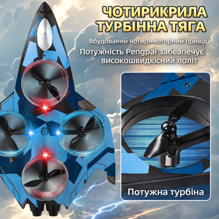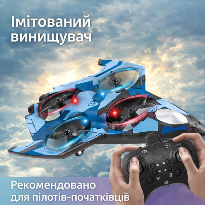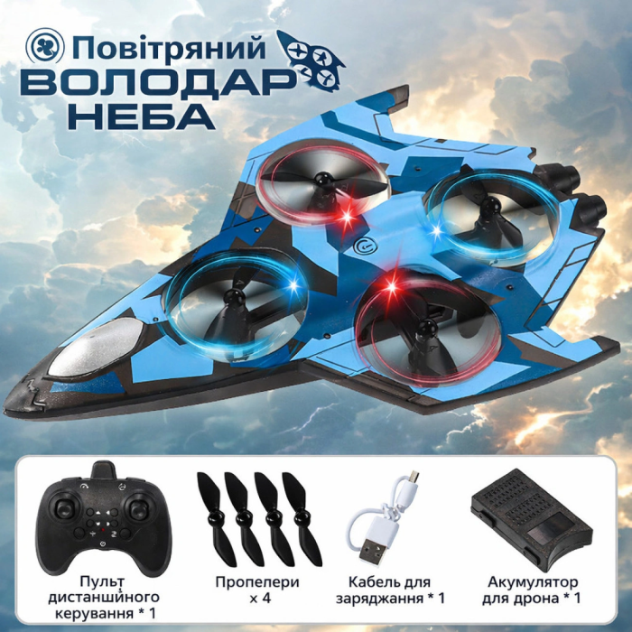 Дитячий радіокерований літак-винищувач YX110 з LED-підсвіткою – трюковий квадрокоптер для дітей