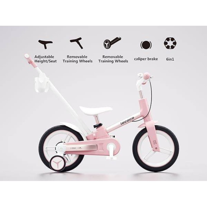 Ручне заднє гальмо забезпечує надійний контроль швидкості, а дзвінок додає безпеки під час прогулянок. Стильний рожевий колір виглядає сучасно та практично — велосипед довго зберігатиме охайний вигляд навіть при активному використанні.
