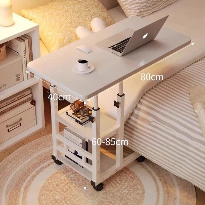 Приліжковий столик T-80 трансформер для ноутбука 80×40 см – білий, регульований по висоті 60–85 см, з 2 полицями на коліщатках