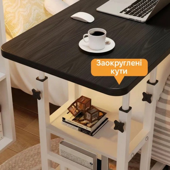 Універсальний столик T-80 — кавовий, журнальний, для ноутбука, приставний, з регульованою висотою та 2 полицями, чорний
