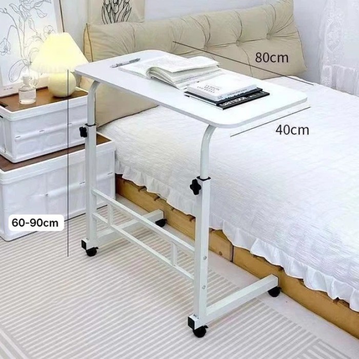 Столик G-80 — приліжковий, регульований, мобільний, білий (80×40×60–90 см)