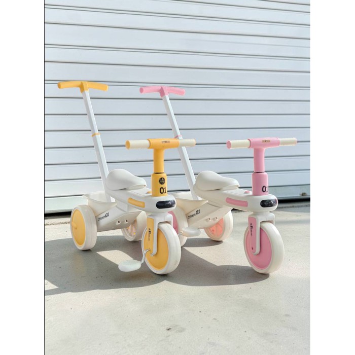 Триколісний дитячий велосипед-біговел Tricycle 01 KE5189 з батьківською ручкою, музика та підсвічування, від 1.5 року, пластиковий, легкий, керований (жовтий, рожевий)