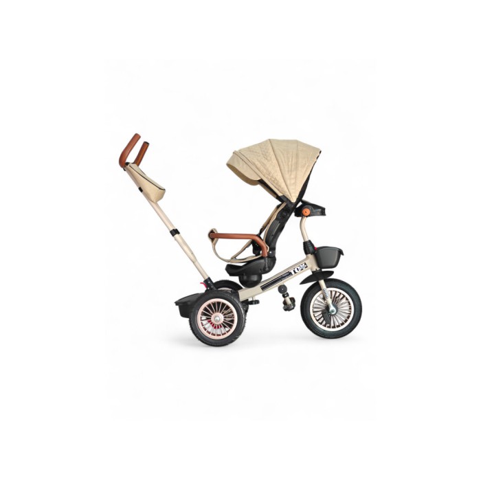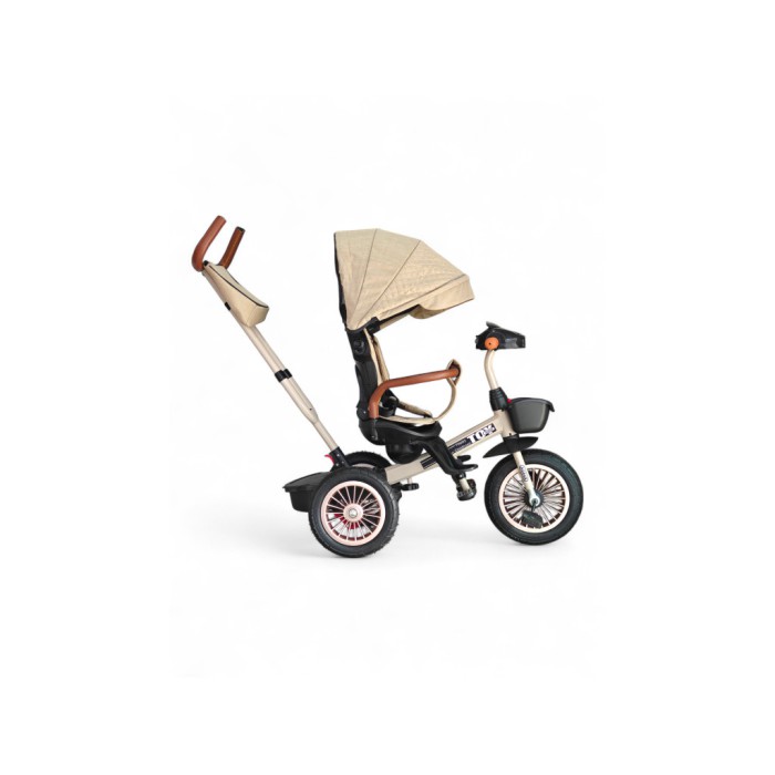 Xgege Toy 1619 триколісний велосипед 2в1 коляска з ручкою для батьків, поворотне сидіння, капюшон, кошик, сталева рама (бежевий, рожевий)